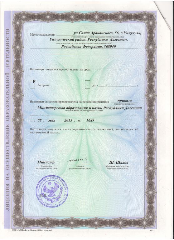| Адрес местонахождения образовательной организации* | 368940, Унцукульский район, с.Унцукуль, ул.С.Араканского 56 |